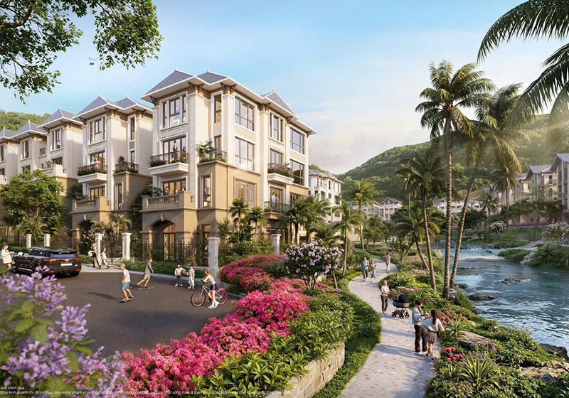 Các căn biệt thự được sắp xếp theo địa hình giật cấp dọc sườn núi hướng biển, nhằm tối ưu tầm nhìn, đảm bảo riêng tư, và tận dụng được ánh sáng tự nhiên lẫn gió biển. Cảnh quan nội khu phong phú với hồ cảnh quan, hồ bơi tràn, công viên, spa, beach club, vườn thiền, an ninh khép kín… nâng tầm trải nghiệm sống resort 6 sao ngay trong nội đô
