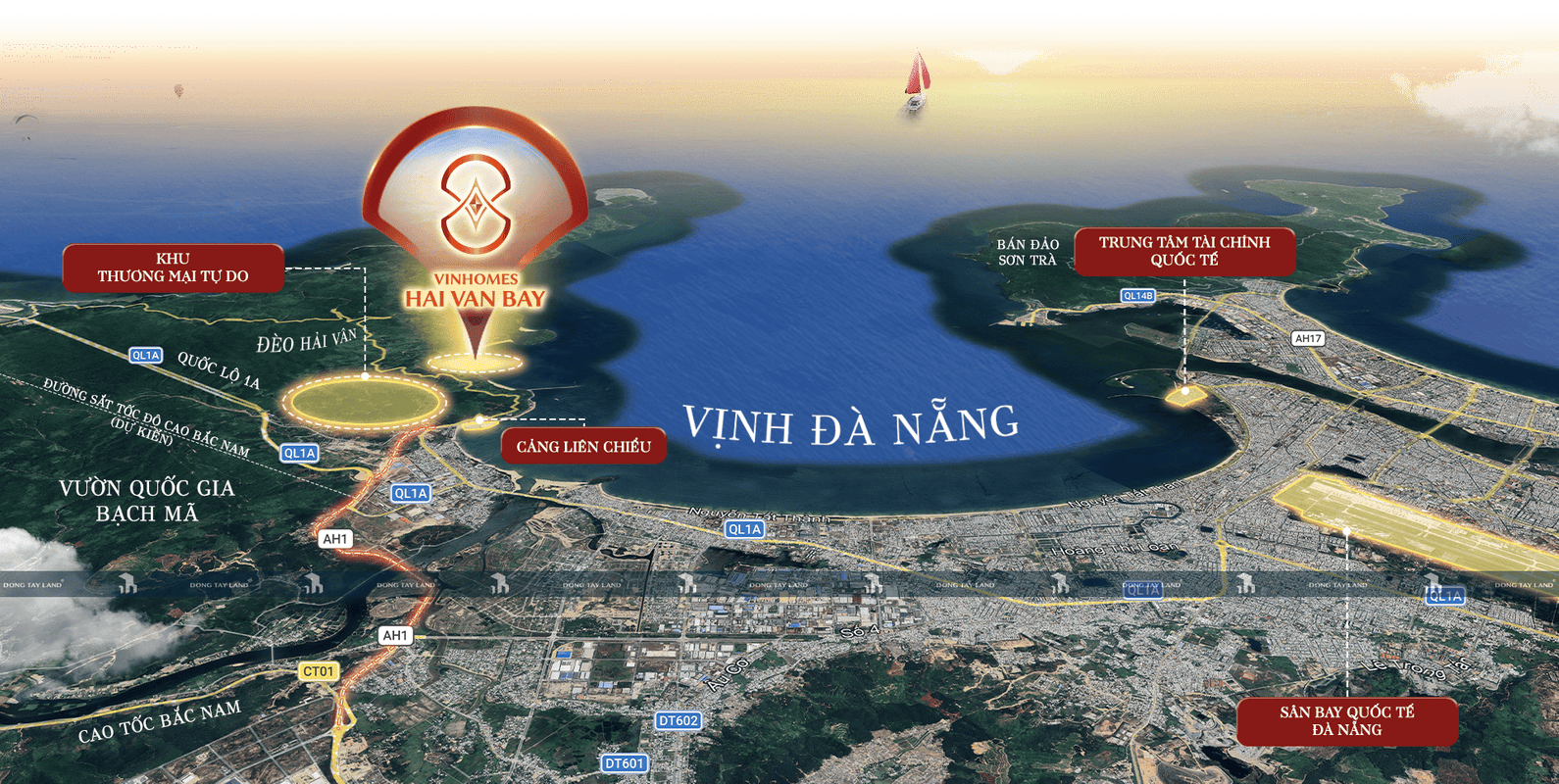 Vinhome HaiVan Bay sở hữu vị trí “vàng” tại vịnh Nam Chơn, dưới chân đèo Hải Vân, nơi được mệnh danh là “thiên hạ đệ nhất hùng quan”. Với thế đất “lưng tựa núi, mặt hướng biển”, dự án không chỉ có giá trị phong thủy cao mà còn mang lại tầm nhìn ngoạn mục với bãi cát trắng mịn, nước biển trong xanh, và không gian biệt lập yên bình.